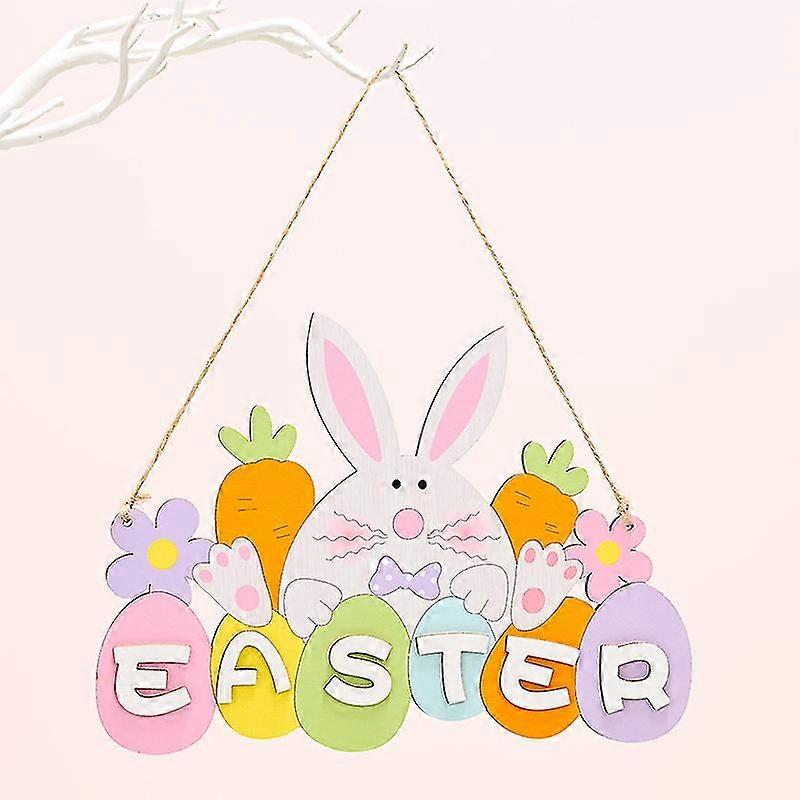 Wooden Easter Welcome Door Sign Bunny Rabbit Hanging Decor Letter Pendant Seasonal Home Decoration