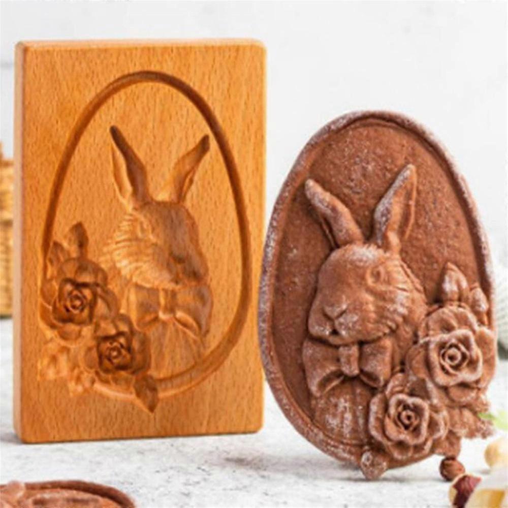 Wooden Easter Bunny Flower Cookie Molds, 3d Baking Biscuit Mold Carved Cutter Embossing Mold, Diy Rabbit Shapes Cookie Stamp