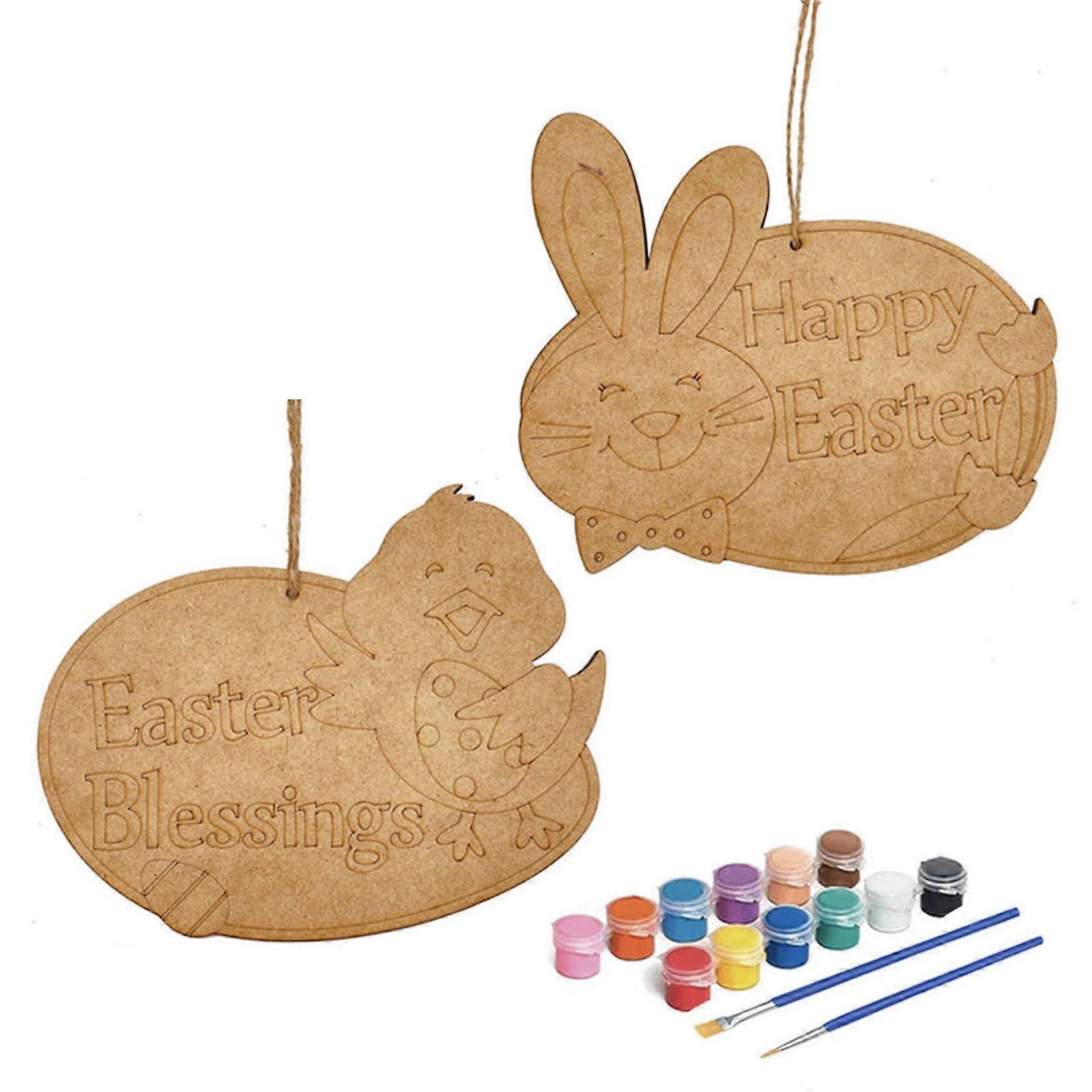 Wooden Easter Pendant Colorful Painted Happy Easter Bunny Chicken Egg Flower Ornament for Home Indoor Outdoor Hanging