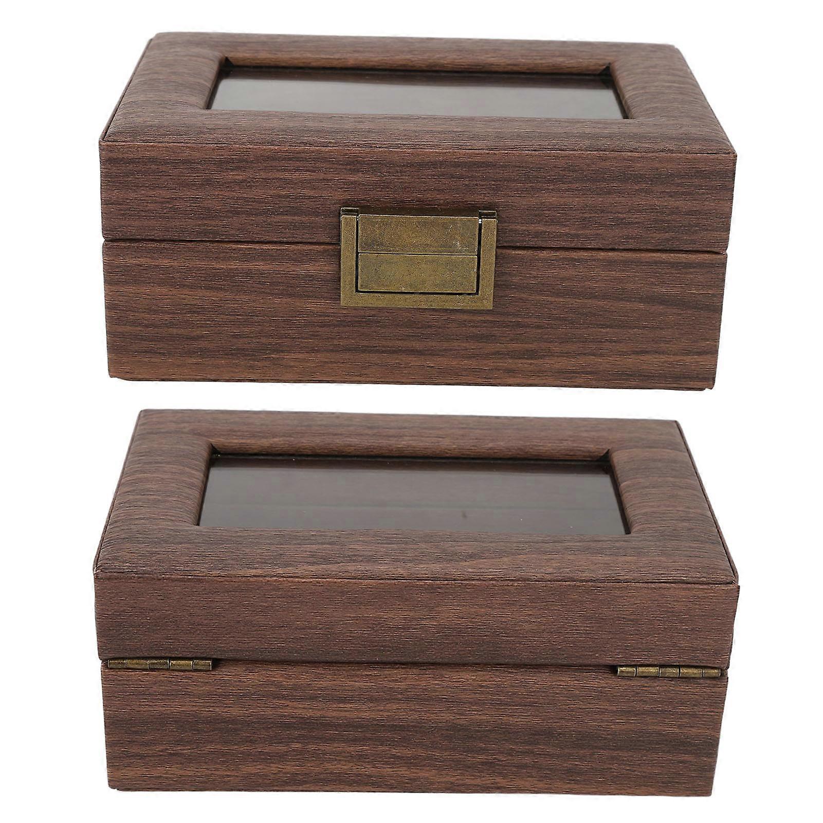 Wooden Watch Box 3 Slots Metal Hinges Natural Vintage Pattern Watch Display Case for Watches Brown