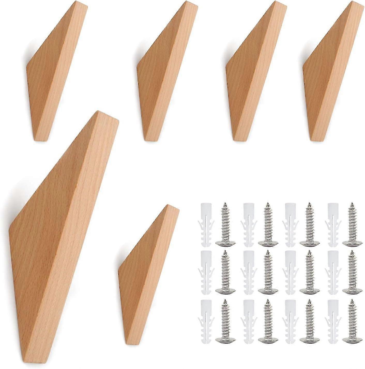 wooden Wall Coat Rack, Wooden Wall Hook, Wooden Coat Hook, Triangle Wall Hook, 6 Pieces Brown