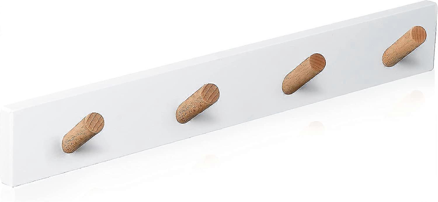 Wooden Wall Coat Rack - 4 Hooks - Wall Coat Hook - Design Wall Coat Rack For Entrance, Bathroom, Child, Bedroom (white)