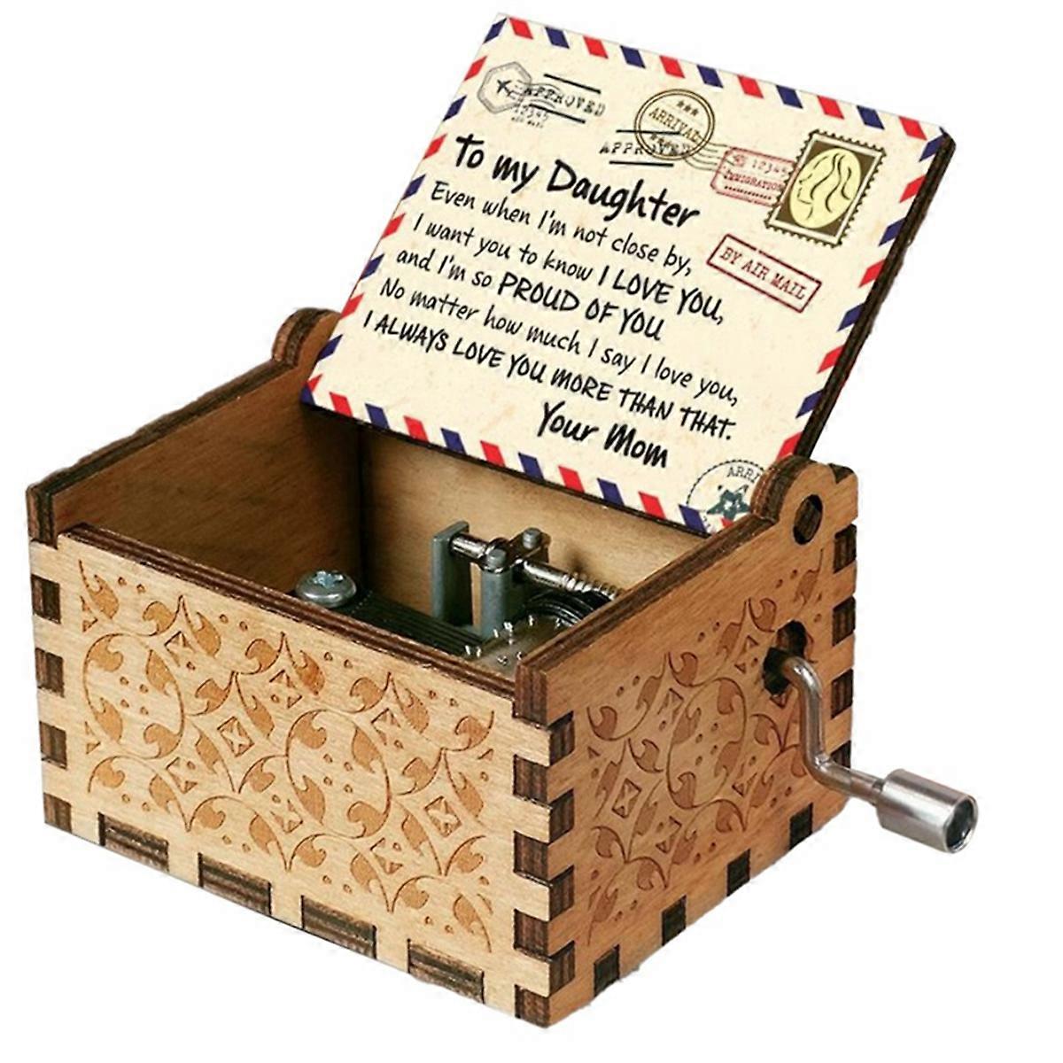 Wood Music Boxes,Laser Engraved Vintage Wooden Sunshine Musical Box,B