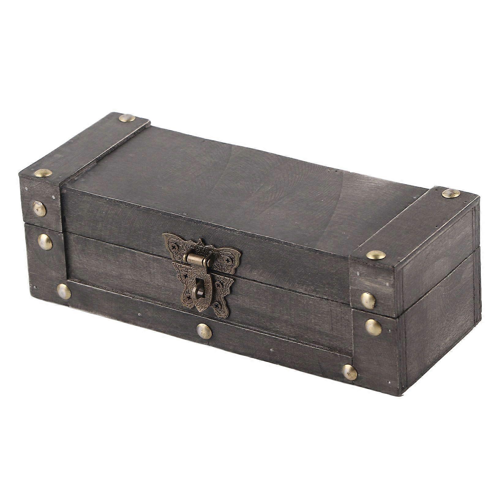 Wooden Organizer Box Alloy Buckle Exquisite Vintage Jewelry Storage Case Home Decoration GreyYMMR)