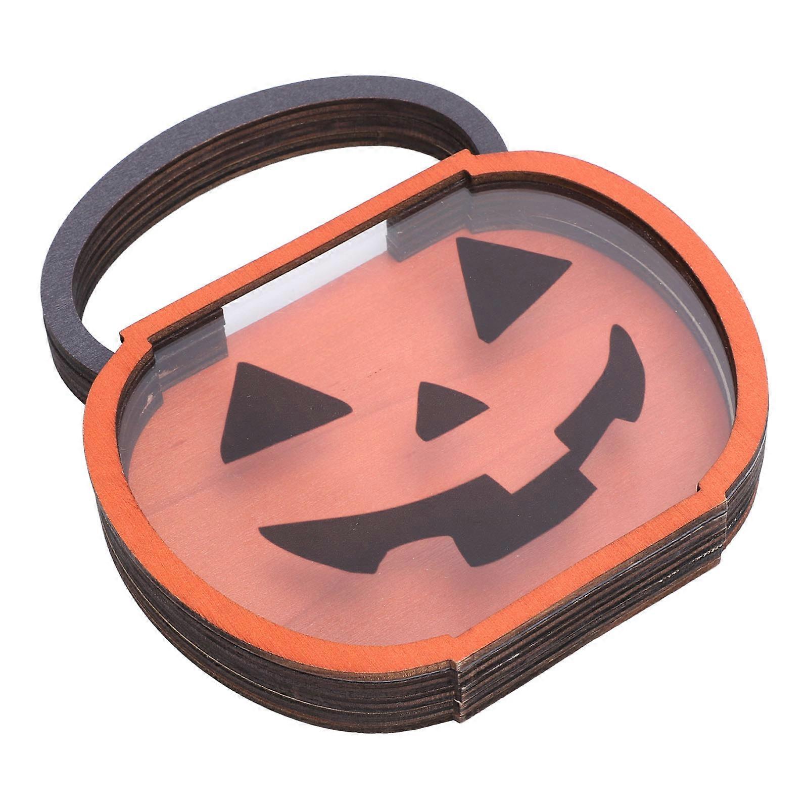 Wooden Pumpkin Candy Box Pumpkin Treat Container with Handle for Holiday Decoration Party Supplies