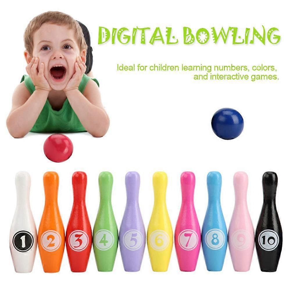 Wooden Color Digital Bowling Children Educational Toy Indoor Outdoor Sports Bowling
