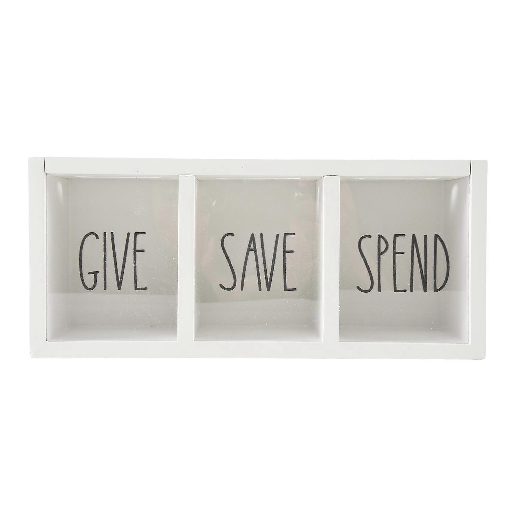 Wooden Give Save Spend Money Saving Box for Kids, Countertop Kid Piggy Bank for Daily Cash, Wall-Mount Kids Bank White