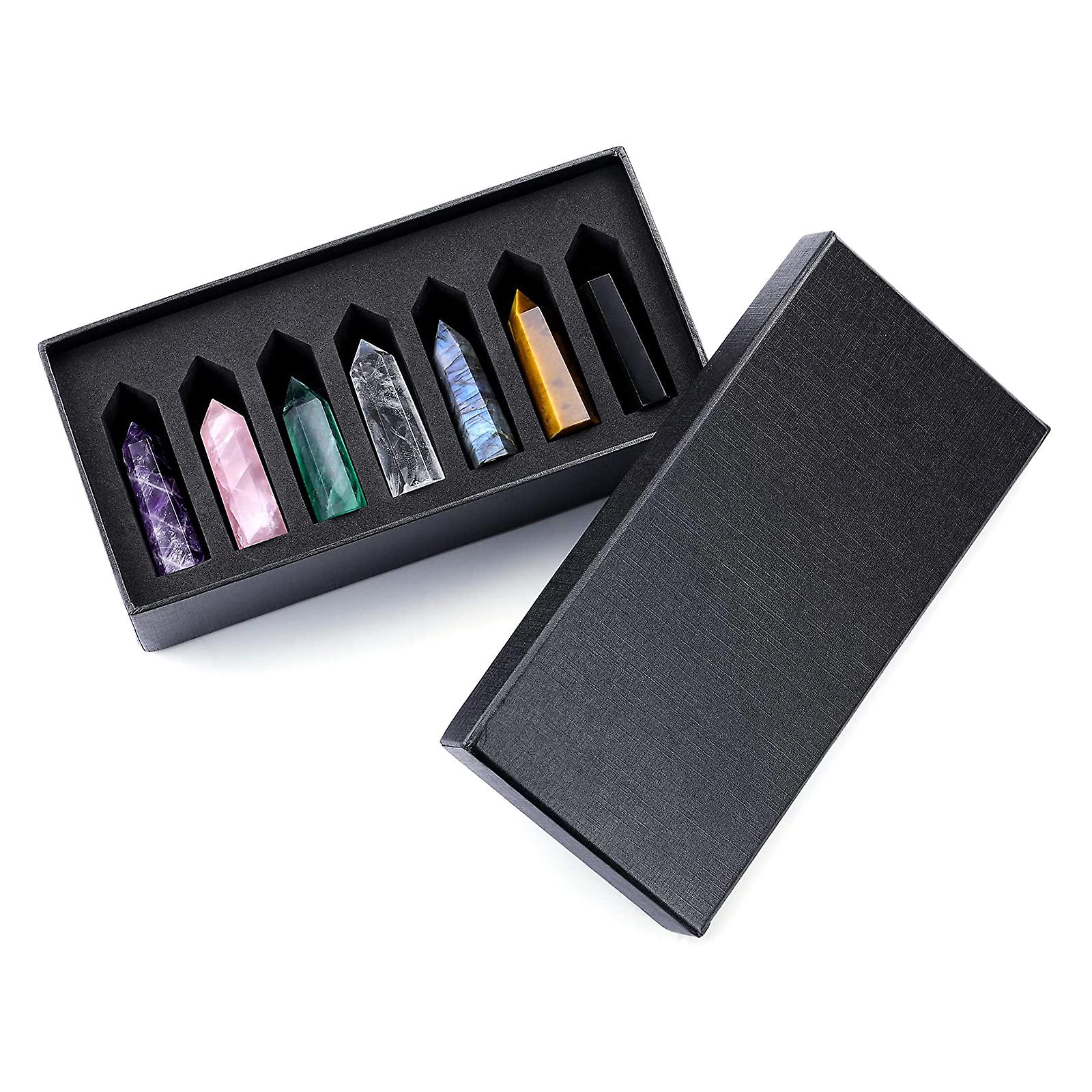 Wooden Gift Box Crystal Pillar Set Natural Single Point Healing Crystal Wand