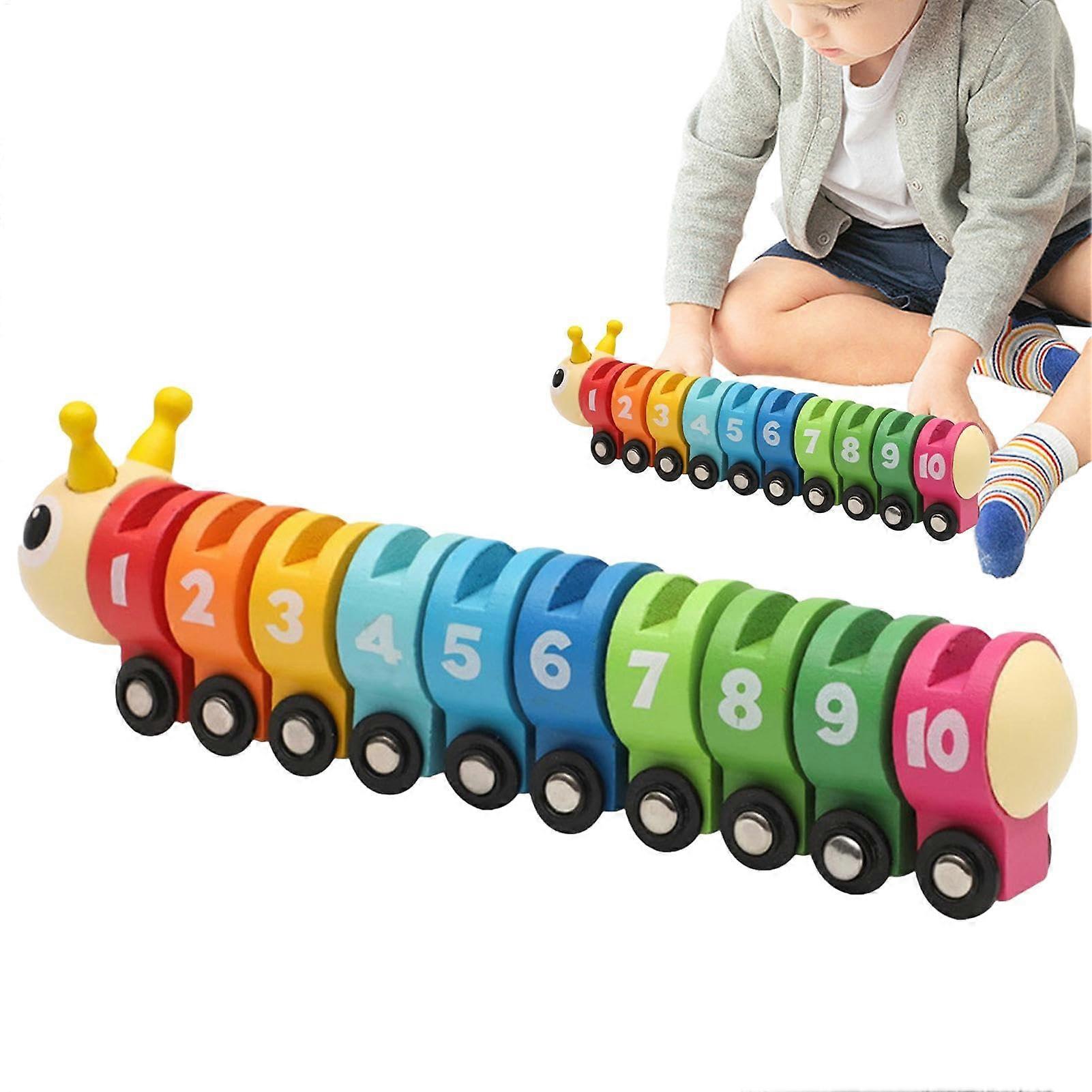 Wooden Caterpillar Counting Toy, Cognitive Math Educational Toy Colorful Wheel Train