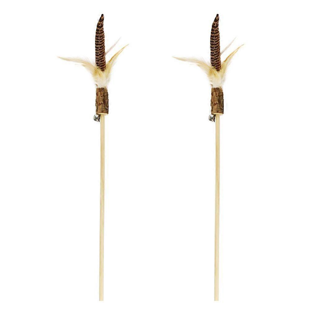 2 Pcs Wooden Cat Teaser Sticks Cat Interactive Toys Feather Cat Playing Rods