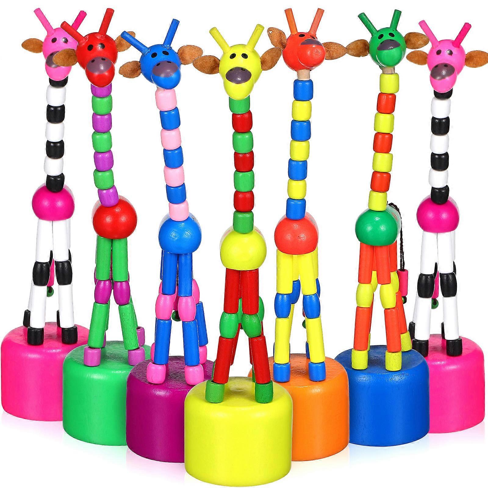 Wooden Giraffe Figurines 15 Pcs Tiltable Animal Toys For Kids Assorted Color Enhancing Hand Eye Coordination Development