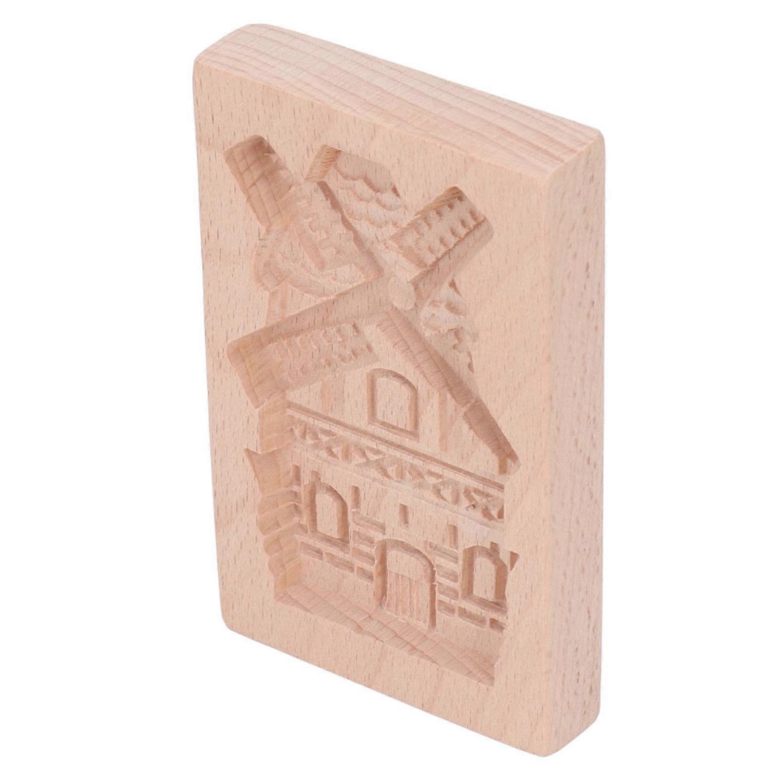 Wooden Cookie Mould Beechwood Reusable Washable Biscuit Press Stamp Mold for Kitchen Baking Windmill