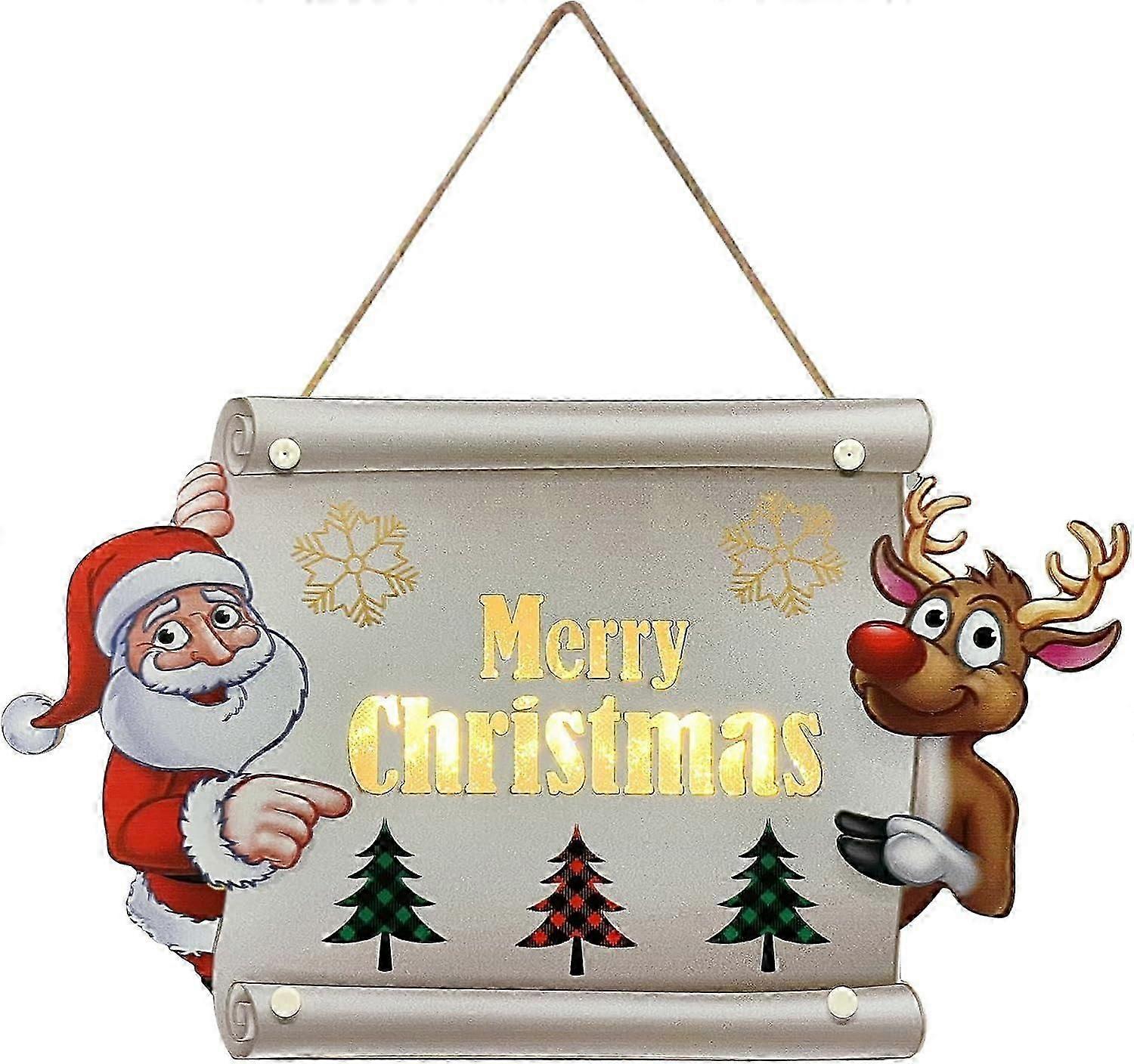 Wooden Christmas Hanging Sign Light 17x29cm,Decorative Wooden Sign Door Hanging