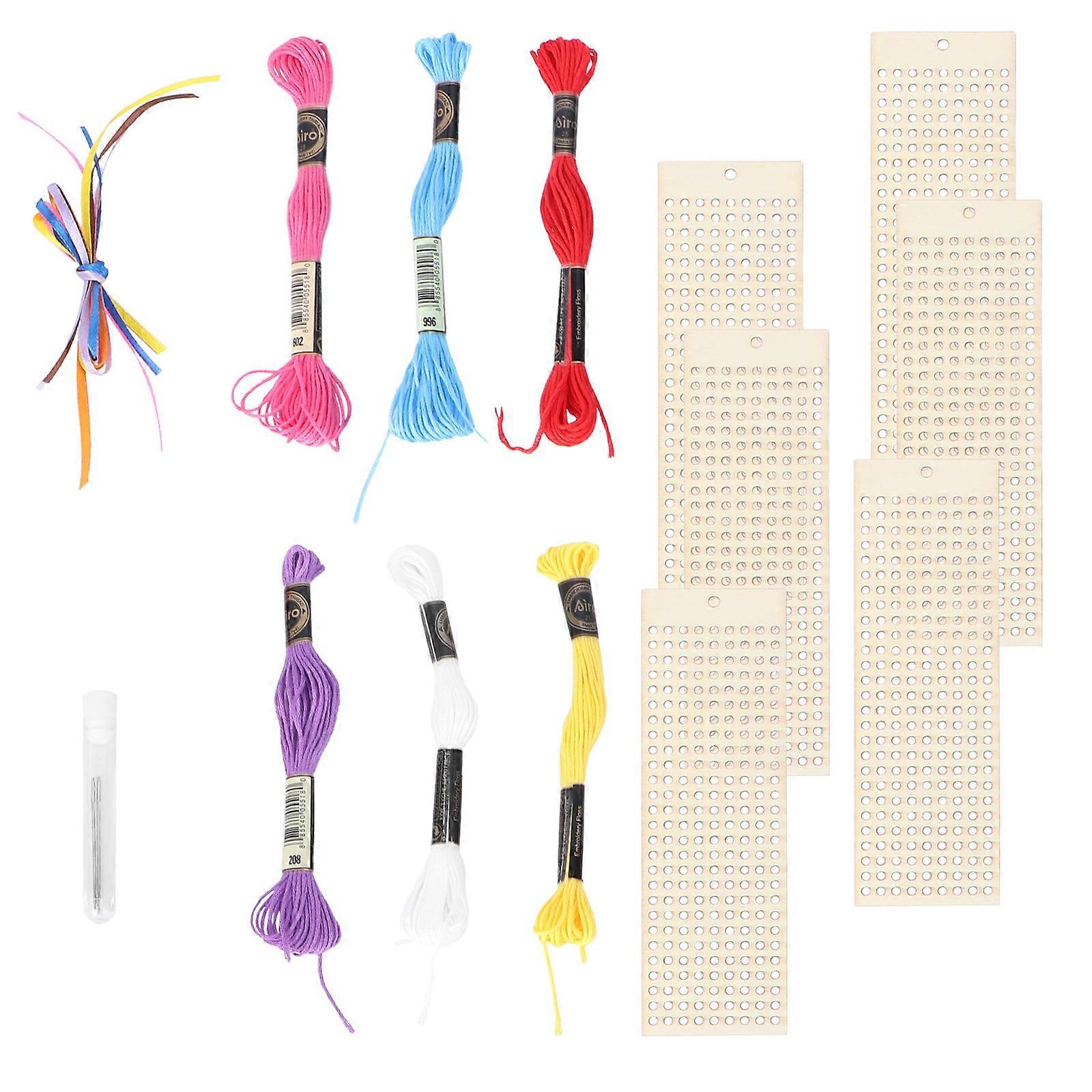Wooden Cross Stitch Kit 6pcs DIY Craft Bookmarks for Adults Christmas Decor with Wood Thread and Hanging Rope
