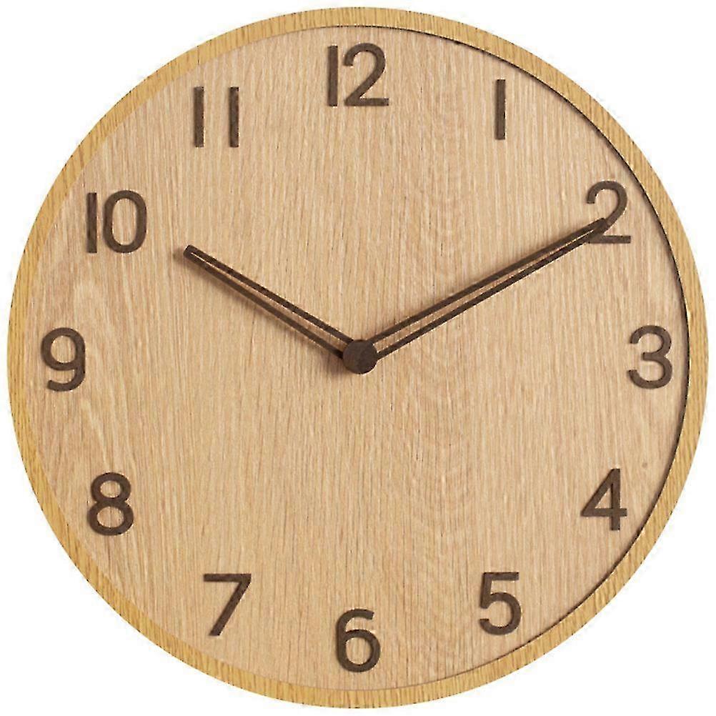 Wooden Silent Wall Clock - 30x30cm Khaki Living Room Decor Hanging Clock