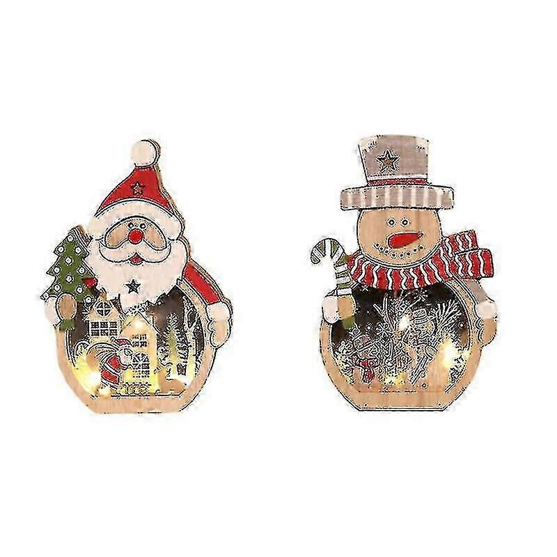 Led Wooden Santa Snowman Decoration Glow-in-the-dark Christmas Tabletop Decoration