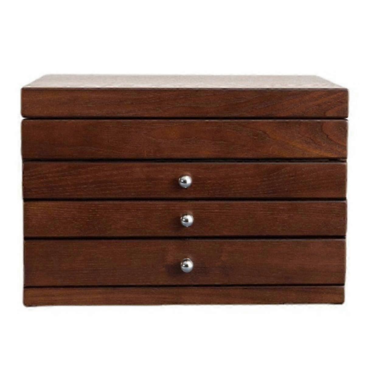 Wooden Jewelry Box Multi-Layer Flip Cover Jewelry Storage Box Gold Jewelry Hair Accessories Wooden Box Retro Jewelry Box