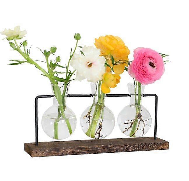 Plant Terrarium with Wooden Stand Air Planter Bulb Glass Vase Metal Swivel Holder Retro Tabletop