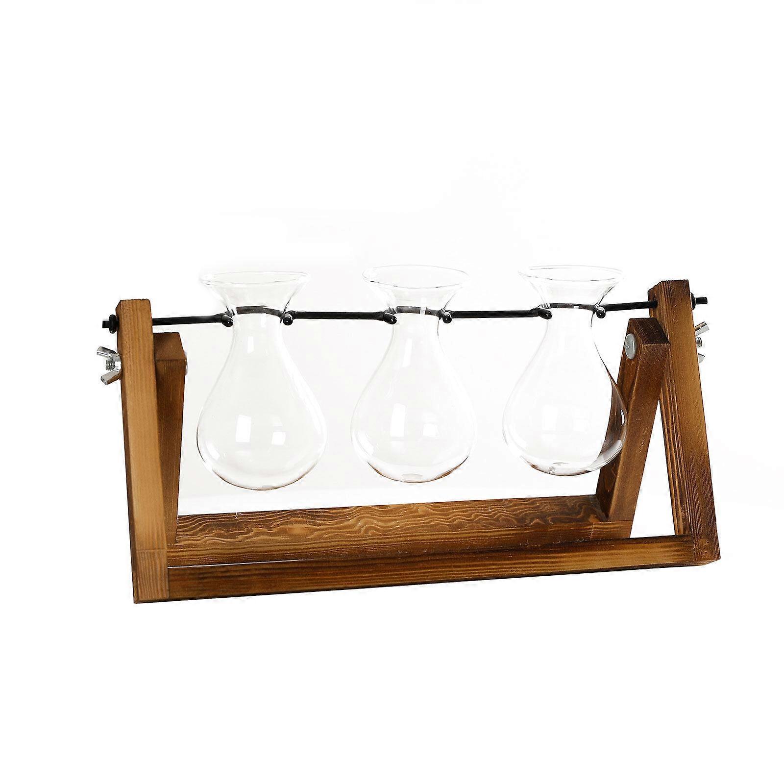 Plant Terrarium with Wooden Stand Air Planter Bulb Glass Vase Metal Swivel Holder Retro Tabletop for Hydroponics Home Garden Office Decoration