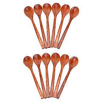 Wooden Spoons, 12 Pieces Wood Soup Spoons for Eating Mixing Stirring, Long Handle Spoon Kitchen Utensil