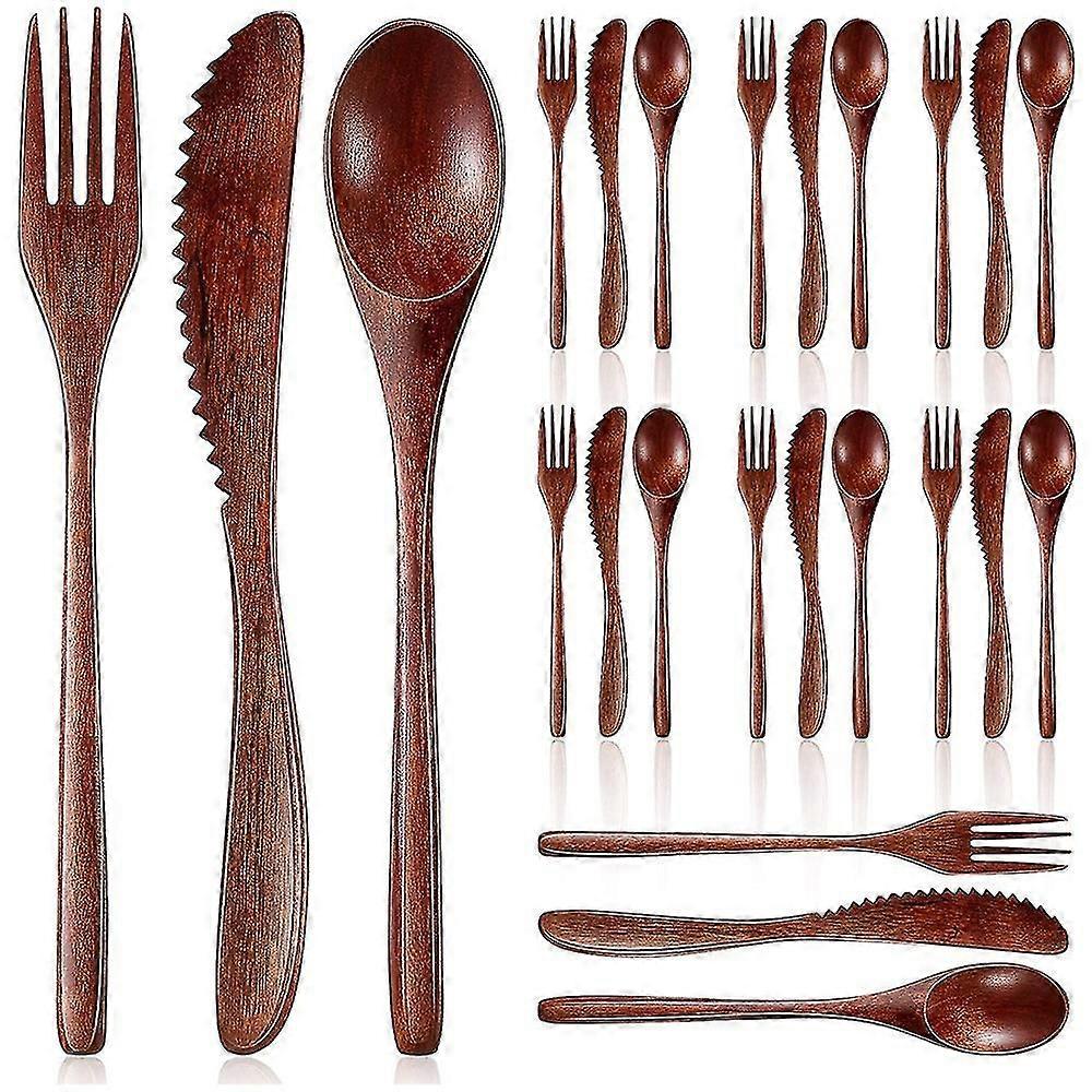 Wooden Spoon Fork Knife Cutlery Set Wooden Dinner Utensil Set Kitchen Wooden Flatware Tableware Cut (haoyi