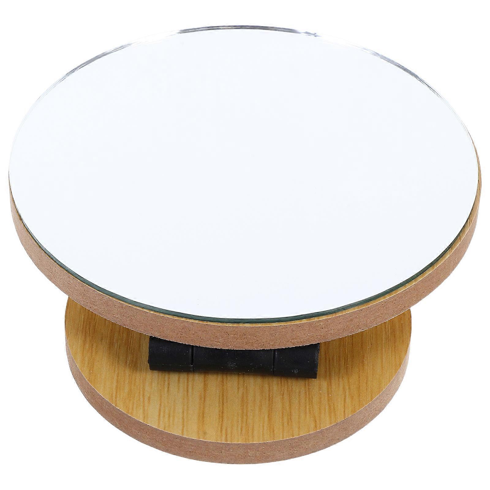 Wooden Desktop Cosmetic Mirror Foldable & Rotatable, Beige Cartoon Style Small Makeup Mirror for Home, Bedroom, Salon Use, Durable Safe Material