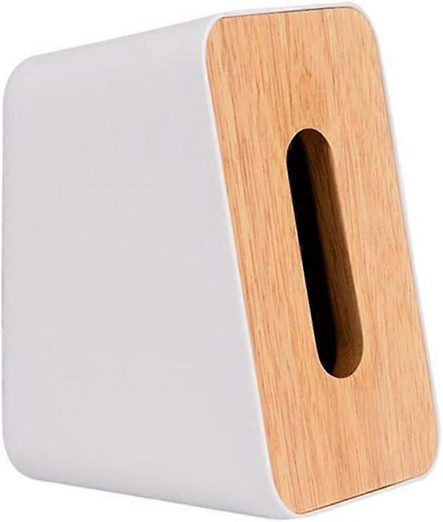 Wooden Tissue Box Vertical With Lid Desk Classic White White