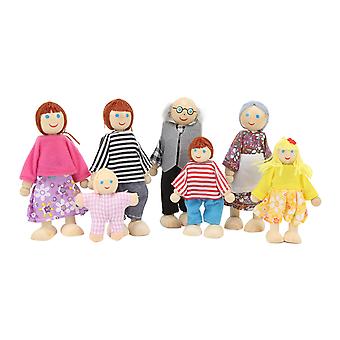 Wooden Doll House Family Cute Simulation 7 Dolls Family Pretend Play Figures for 1:12 Dollhouse