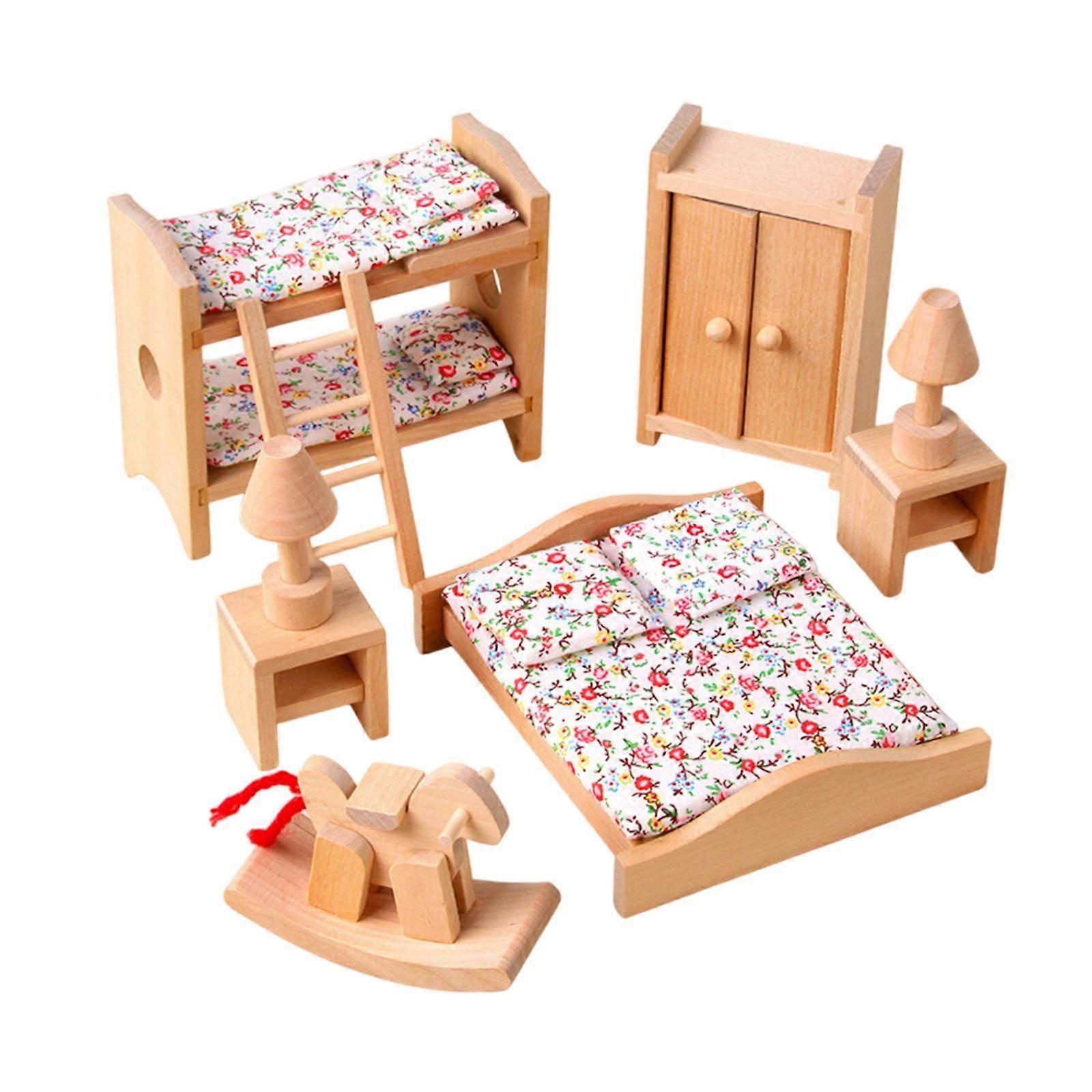 Wooden Dollhouse Miniature Furniture Set DIY Pretend Play Toy for Kids Girls Children Room