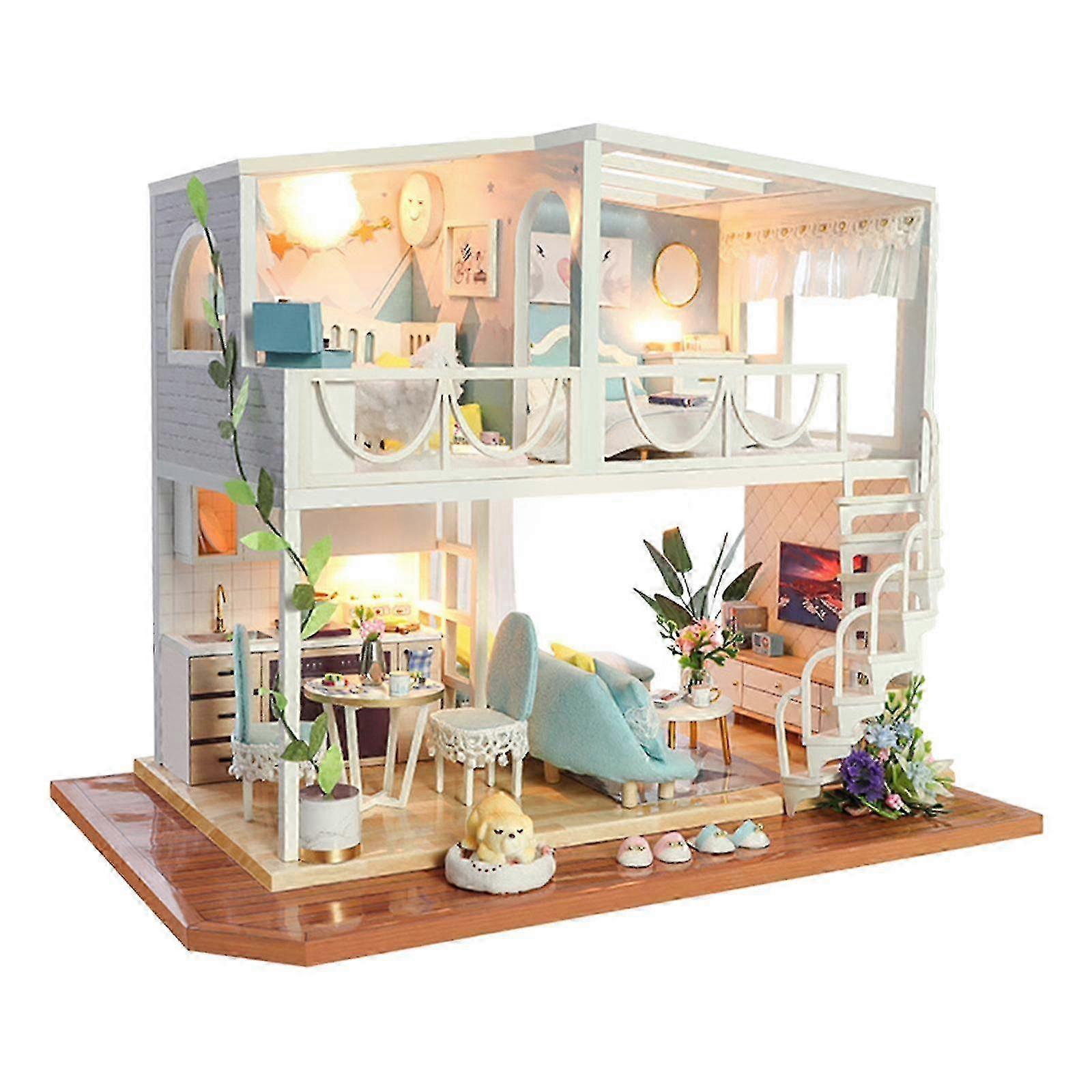Wooden Doll House Furniture Toy DIY Miniature Doll House Gifts for Kid