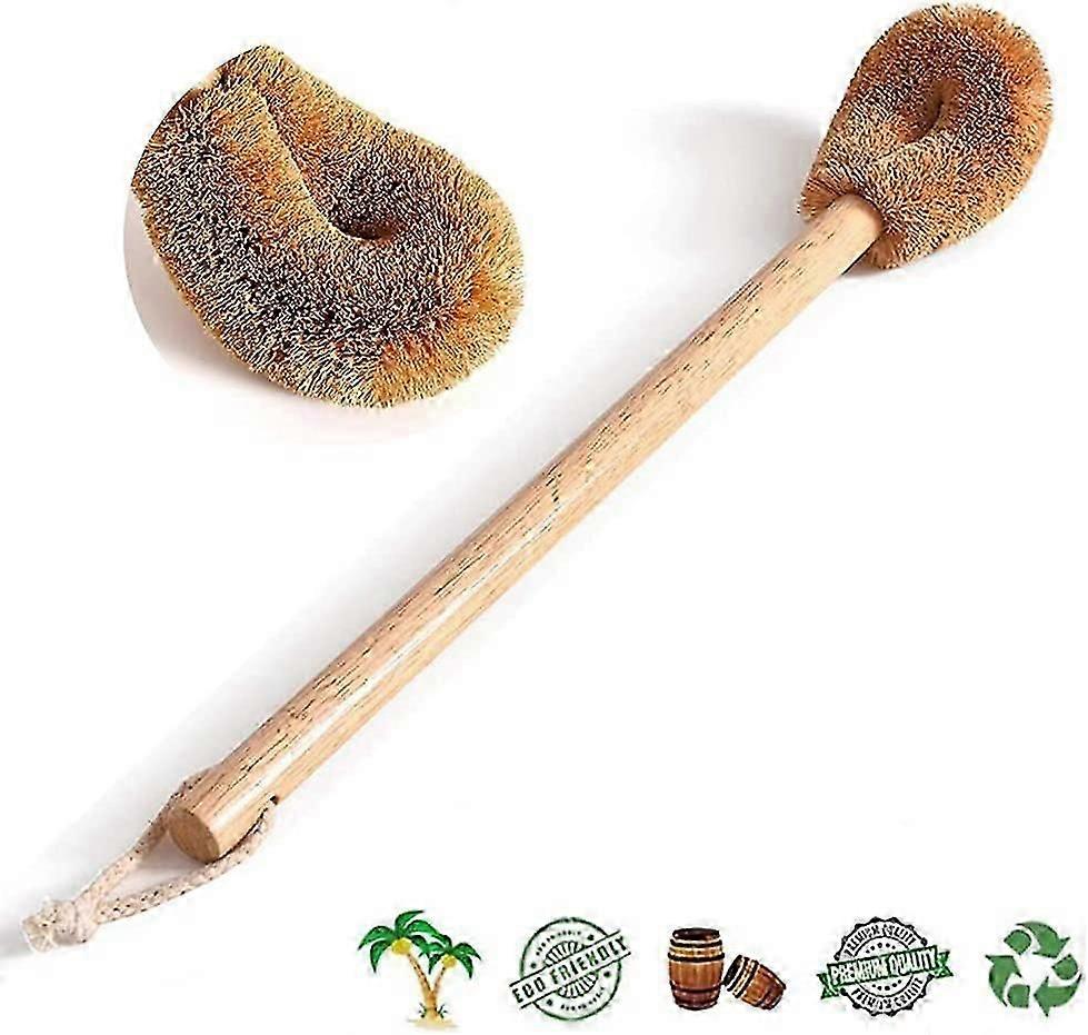 Wooden Toilet Brush, Natural Coconut Fiber Brush Head and Beech Wood Handle for Bathroom, Scrubbing Brush
