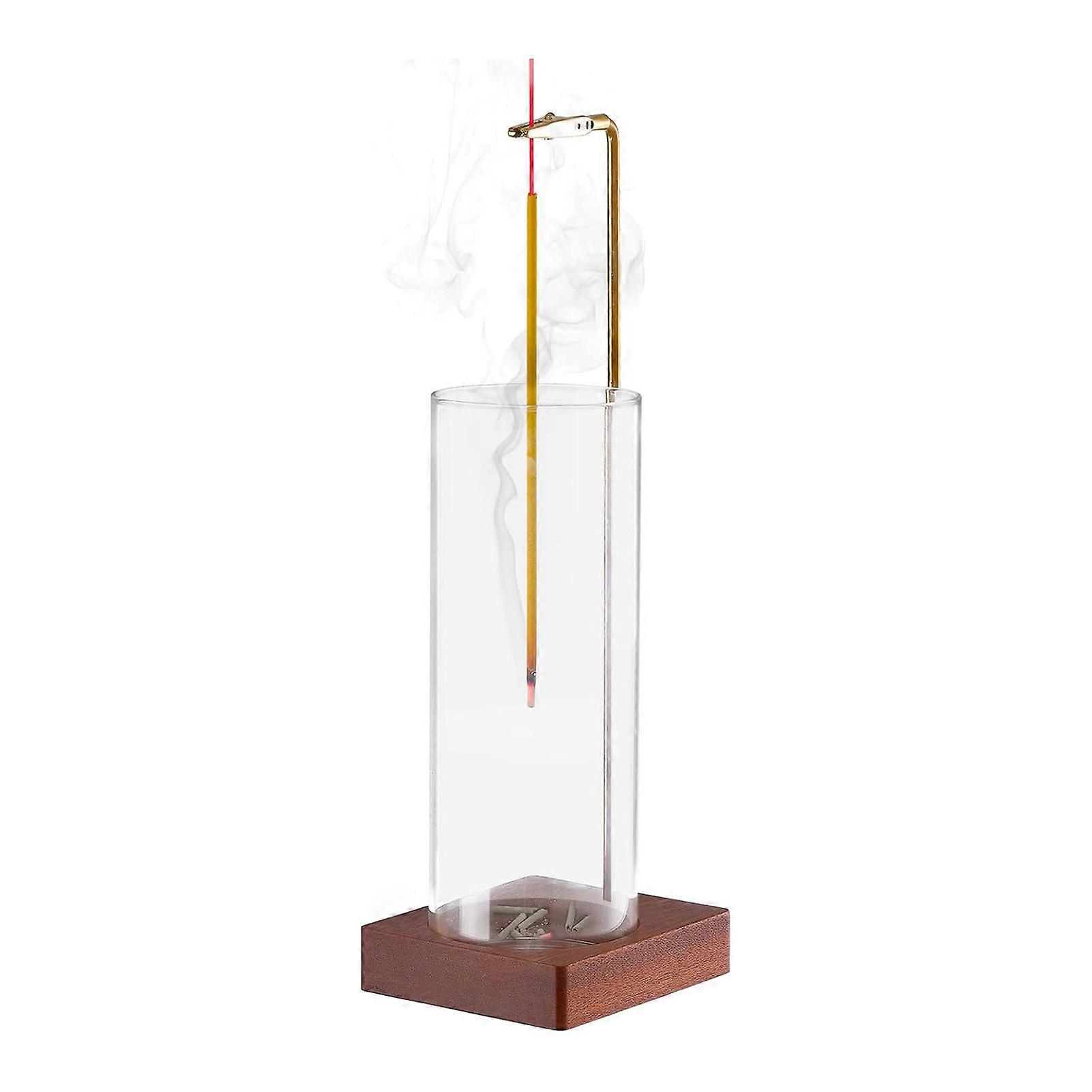 Incense Stick Holder with Wooden Tray Removable Glass Mess-Free Incense Burner Ash Catcher Meditation Yoga Relaxation Home Decoration Jikaixiang