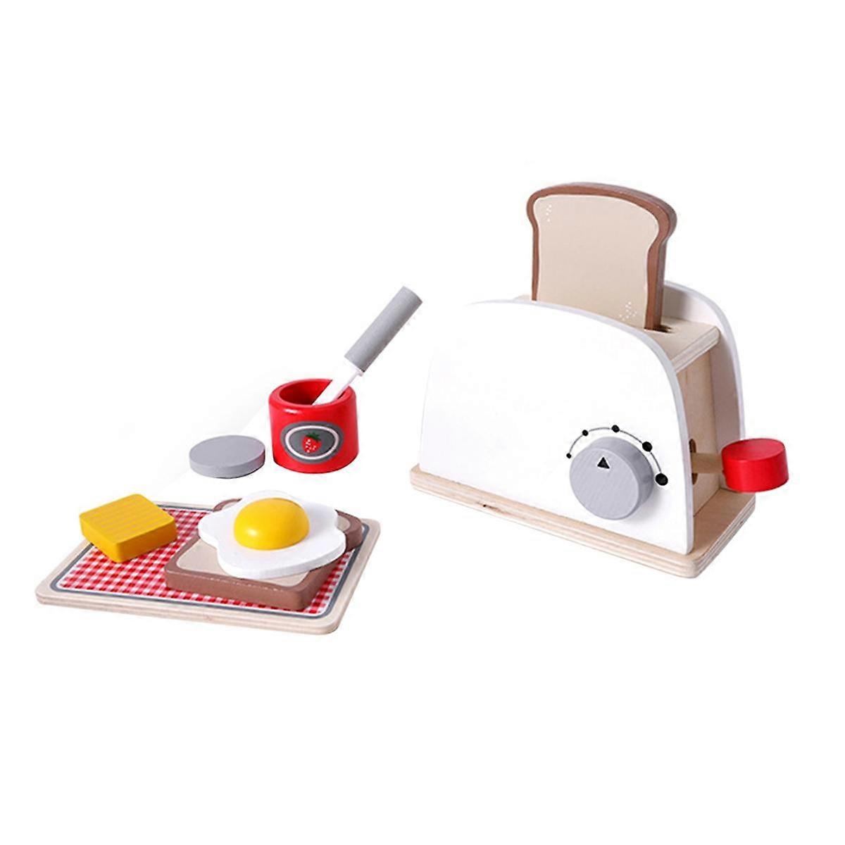 Wooden -Up Toaster Toy Play Kitchen Accessories Play Food Bread, Butter, Poached Egg Cutting Preten