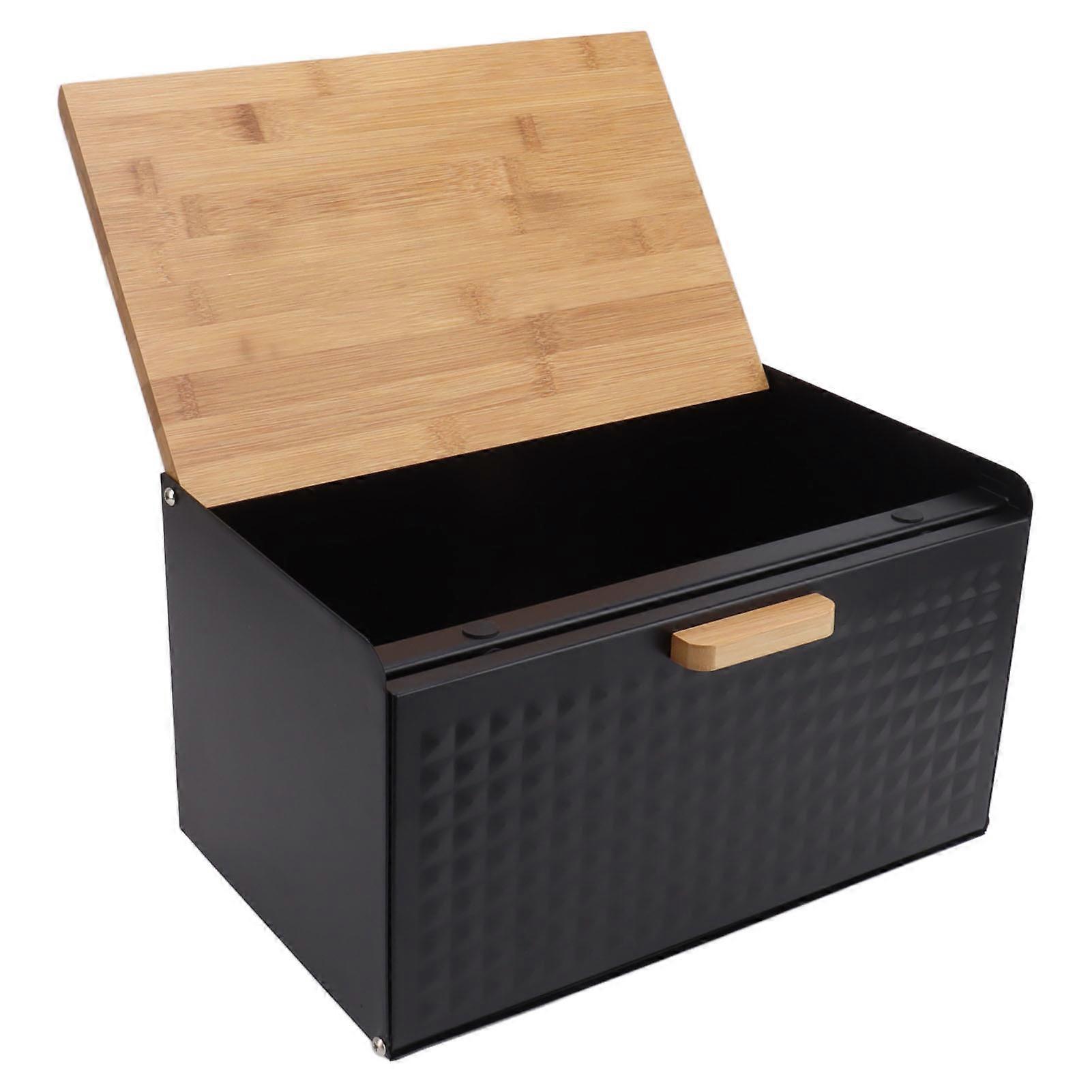 Wooden Bread Box Natural Vintage Heavy Duty Large Capacity Bread Storage Bin for Kitchen Countertop Black