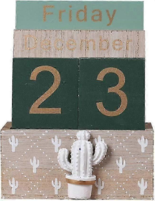 Wooden Perpetual Calendar, Vintage Wood Block Perpetual Calendar Desk Accessory Month Week