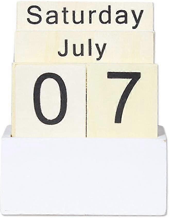 Wooden Perpetual Calendar, Vintage Wood Block Perpetual Calendar Desk Accessory Month Week Date Bloc