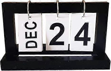 Wooden Perpetual Desk Calendar Desk Office Decor Creative Reusable Flip Chart Perpetual Calendar, Vintage Retro Style For Home And Office DecorBlack