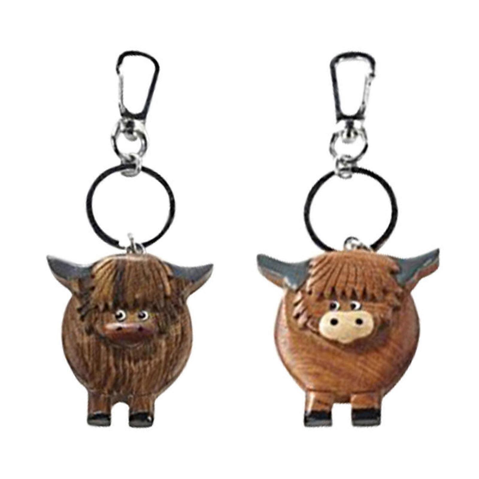 Wooden Highland Cow Keyring Hand-painted Wooden Keychain Vintage DIY Wood Keychain Car Bag Pendant