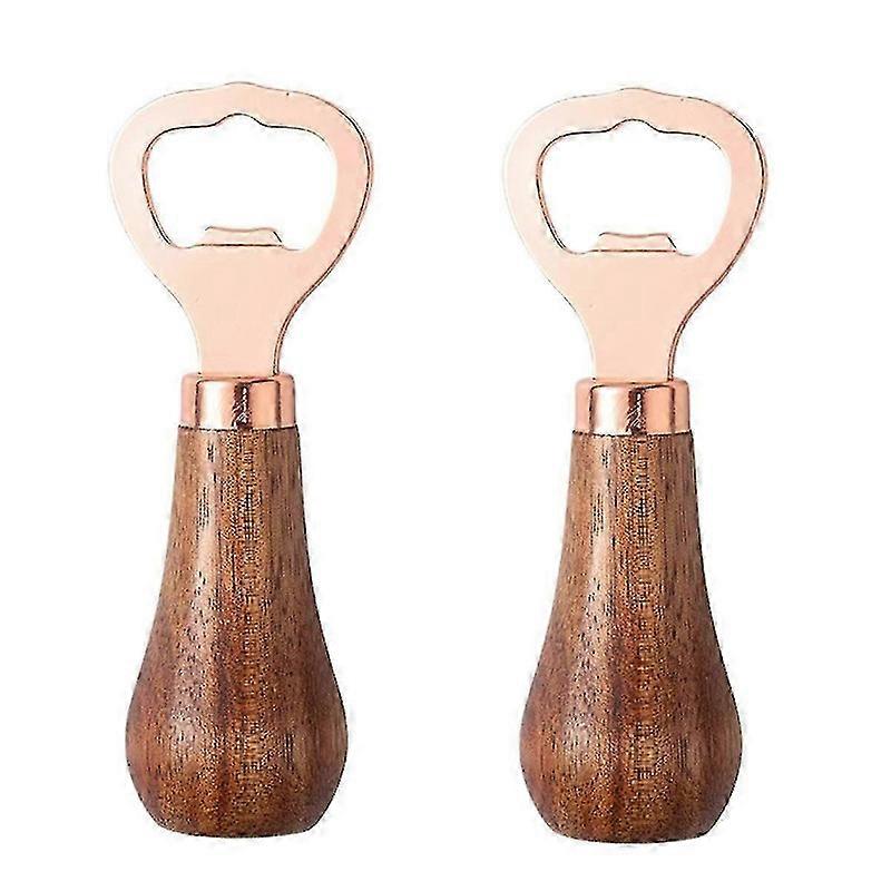 Stainless Steel Beer Bottle Opener with Wood Handle, Kitchen Tools, Anniversary Wedding Gift--Rose Gold