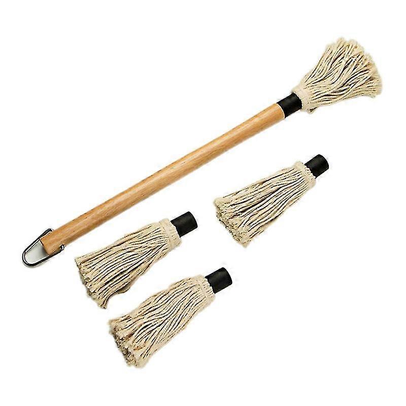 Wooden Handle Barbecue Brushes Washable Kitchen Bbq Accessories 3 Replacement Heads For Roasting And Grilling For Sauces Marinades Barbecue
