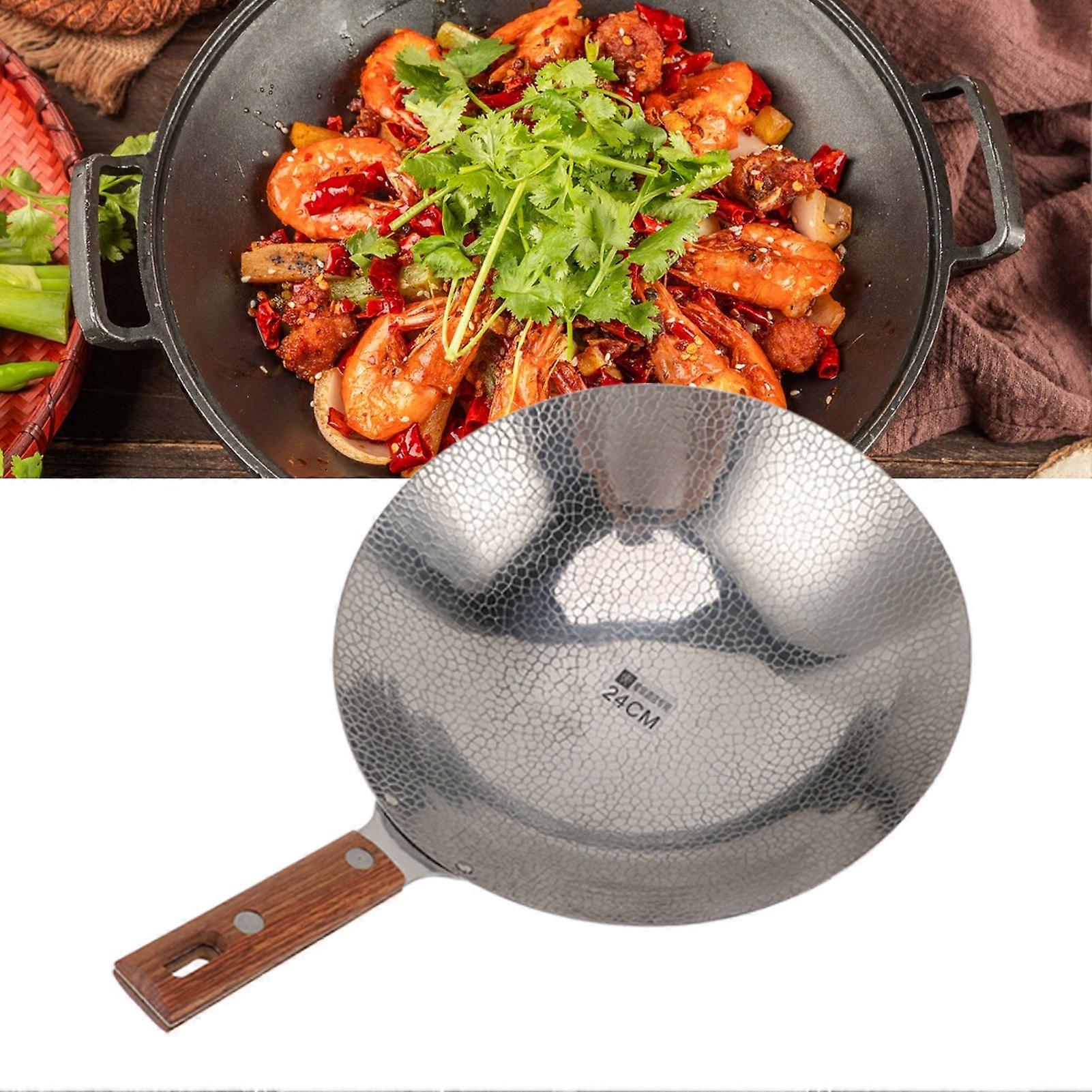 Wooden Handle Frying Pan Fast Heating 304 Stainless Steel Multi Functional Non Stick Stir Fry Pan 24CM Item Type: Frying Pan Material: Solid wood, 304 stainless steel