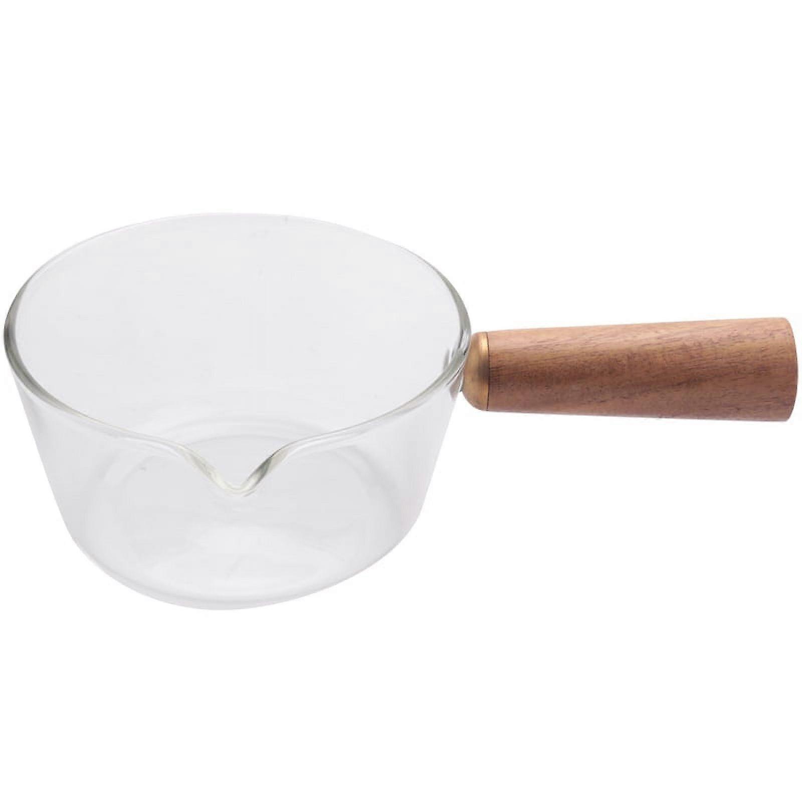 Glass Milk Pot with Wooden Handle 400Ml Cooking Pot for Salad Noodles Gas Stove Cookware