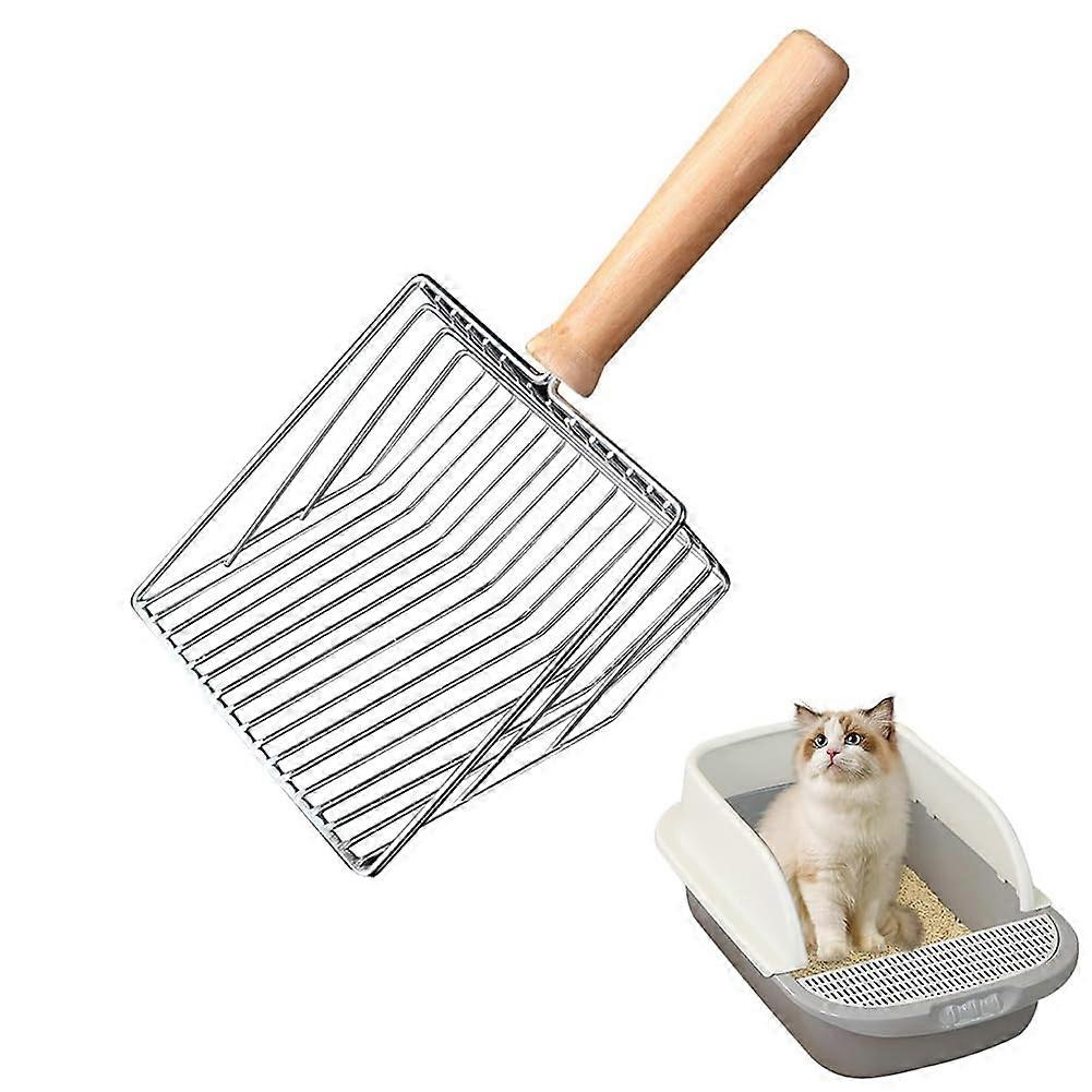Cat Litter Scoop with Wooden Handle, Metal Tray Scoop, 26 cm for Cat Litter Tray