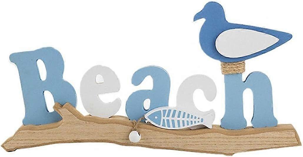 Wooden Beach Letter Ornament Ocean Decoration Art Crafts with Blue Bird for Living Room Tabletop (blue1pc)