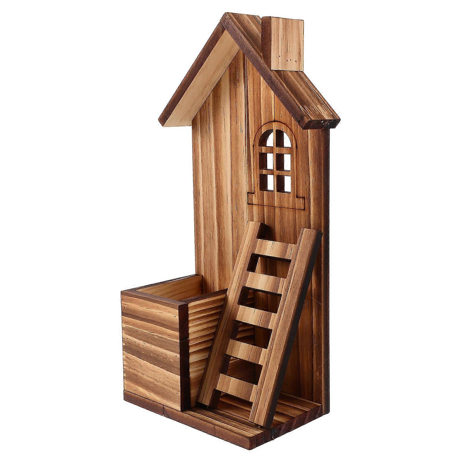 Wood Planter Wooden Small Flowerpot for Decoration 2Pcs Light Brown