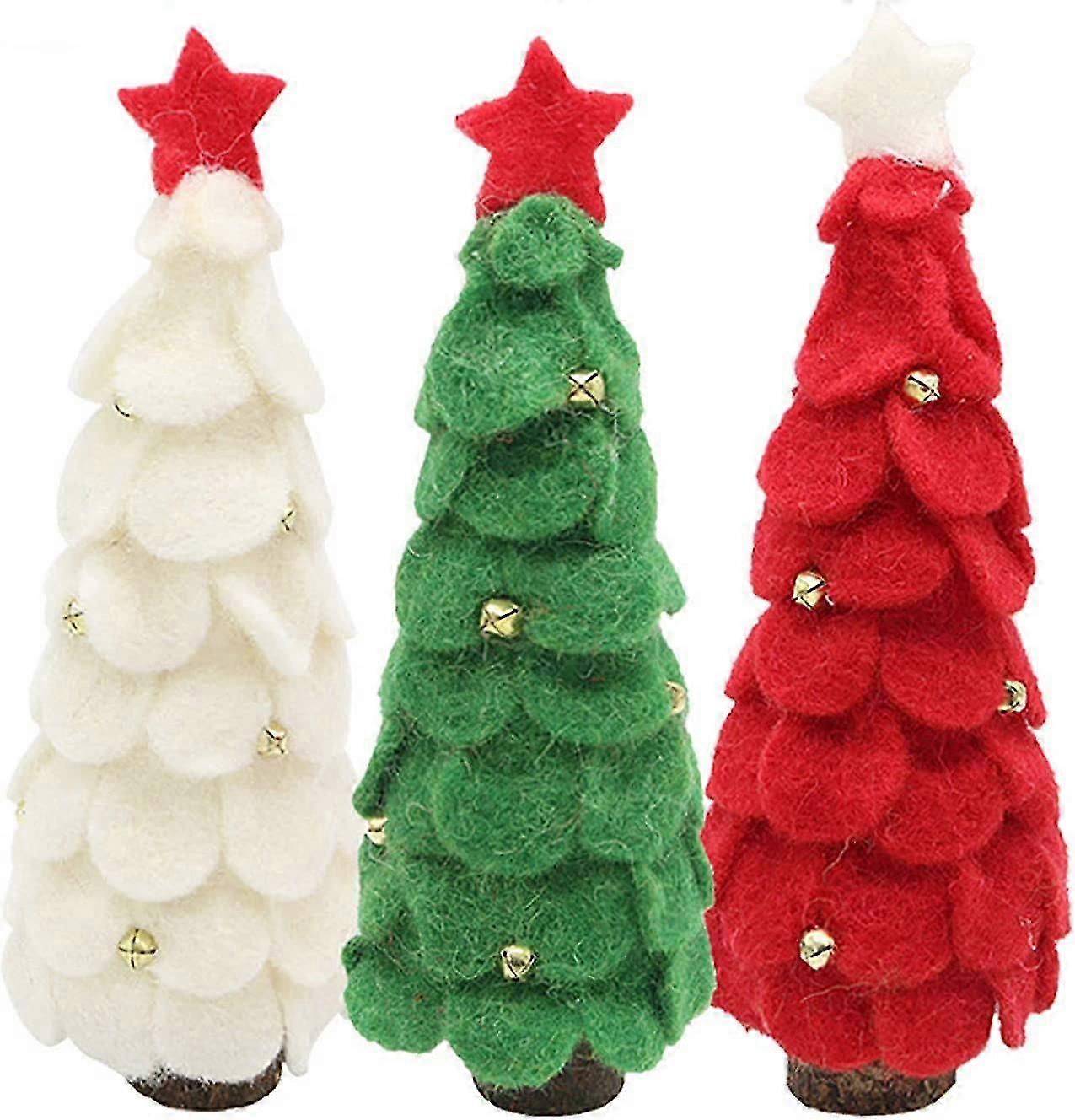 Set of 3 Miniature Felt Christmas Trees with Wooden Base - 10cm Tabletop Trees for Holiday Decor