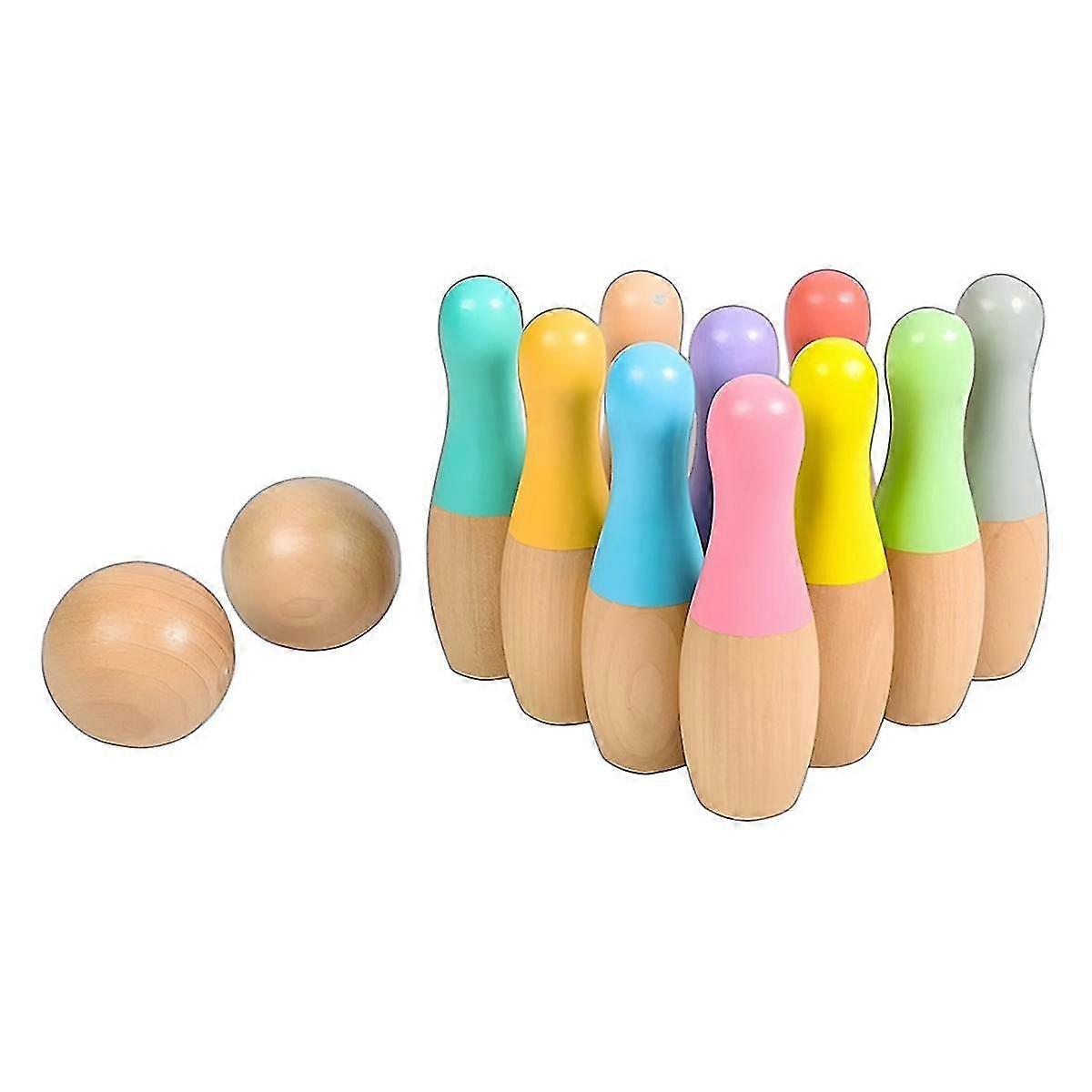 Wooden Bowling Toy Fine Workmanship Safe Use Wooden Kids Indoor Outdoor Bowling Toys Kids Bowling Set Interactive Toy