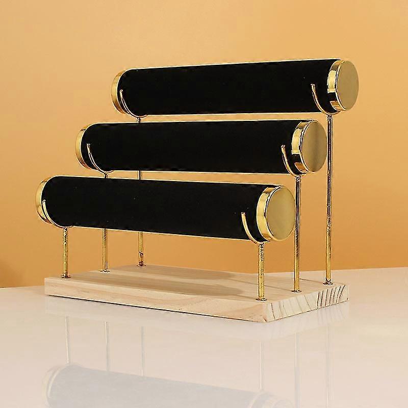Wooden Bottom Gold 3-layer Watch Rack, Bracelet, Bracelet Display Rack, Jewelry Bracelet Display -black