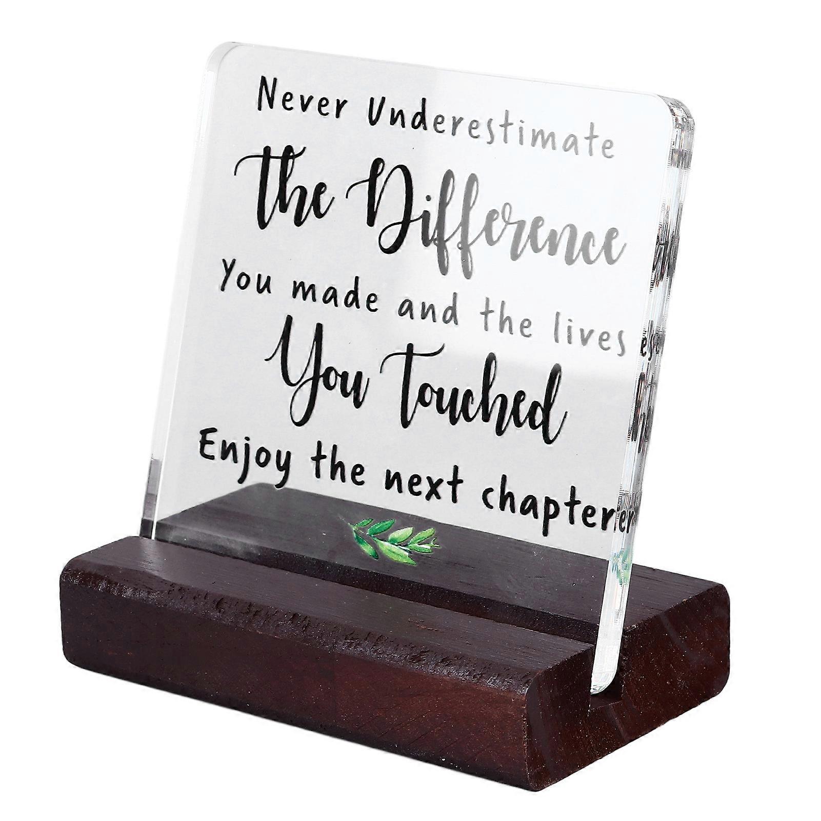 Acrylic Sign with Wooden Holder Base Thick Transparent Tabletop Signage for Retire Leaving and Graduate