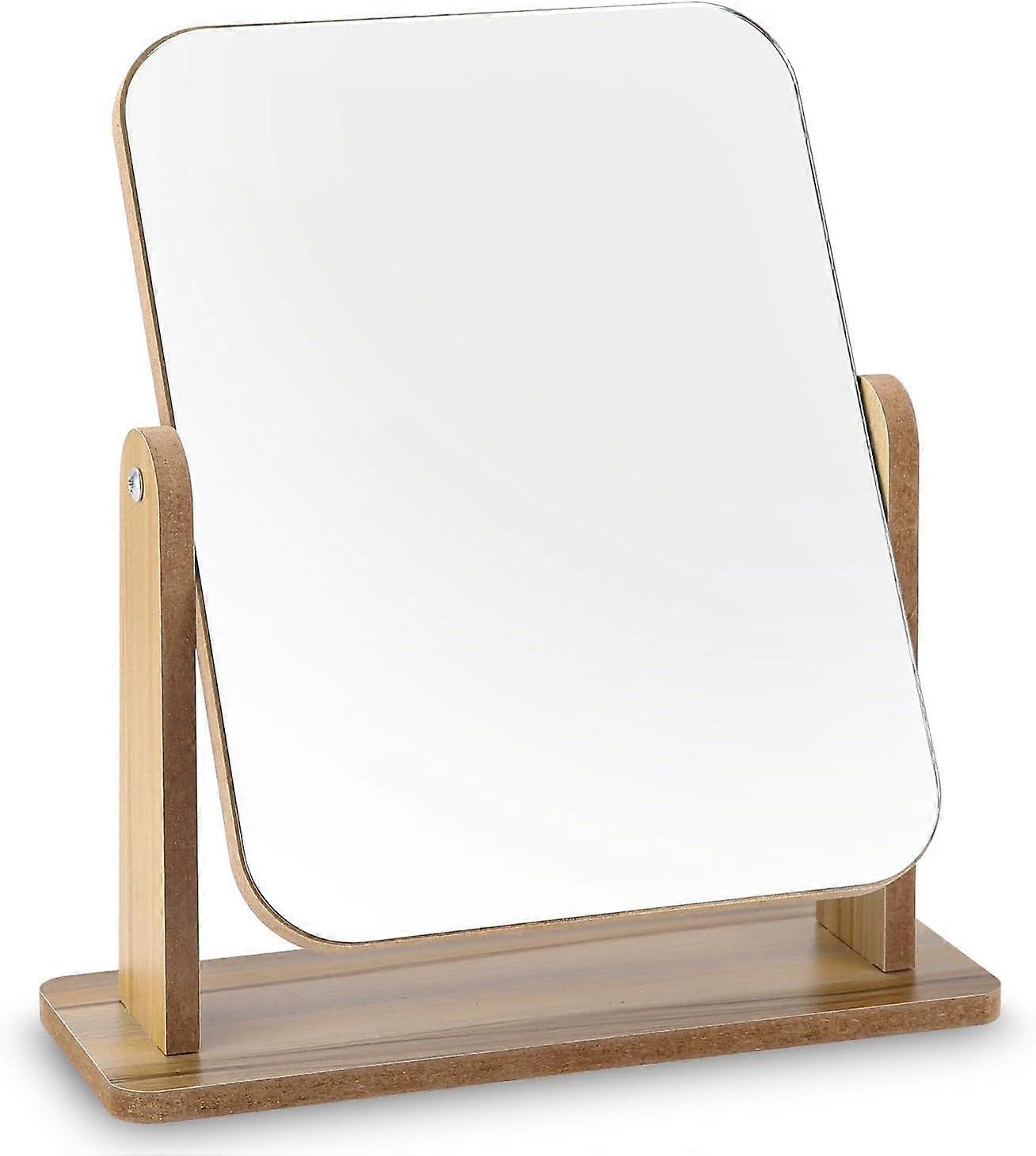 Wooden Makeup Mirror, Small Standing Mirror, 25 x 22 cm, 360 Degree Rotating Table Mirror, High Standing Mirror